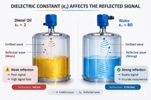 For technologies such as radar or capacitive level sensors, the dielectric constant (εr) of the liquid plays a crucial role in signal reflection.